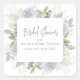 Pegatina Cuadrada Champán de boda floral elegante con rosas azules p