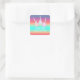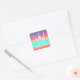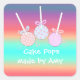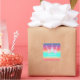 Un diseño dulce con tres copas de tarta con pequeños arcos y acentos de cinta. Un fondo de tonos alegres, desde el azul hasta el rosa.