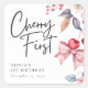 Cherry First Pink Bow Coquette Primer Pegatina de Birthday Square