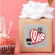 Echa un vistazo a Chibi Catwoman posteando en la Chibi Batman en este adorable gráfico, presentando un corazón rojo gigante con la palabra "Amor".