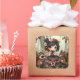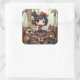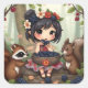 Pegatina Cuadrada Chibi Fairy Eating Blackberries with Forest Friend