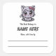 Pegatina Cuadrada Chibi Purple Cat Children's Bookplate con mensaje