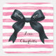 Pegatina Cuadrada Chic Black Bow Pink White Stripe