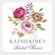 Pegatina Cuadrada Chic Fuchsia Rosa Floral Ducha de Novia Personaliz