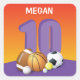 Pegatina Cuadrada Chica 10.ª Bolas Deportivas de Cumpleaños