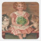 Pegatina Cuadrada Chica Cat Kitten Flores Cumpleaños