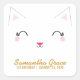 Este dulce diseño de pegatina de gatitos está disponible en blanco y rosa. En la tienda también se ofrecen invitaciones y productos de fiesta en papel.