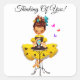 Pegatina Cuadrada Chica Cuidado Con Vestido Amarillo Pensando En Ust