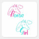 Pegatina Cuadrada Chica de caballos en rosa y turquesa