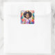 Pegatina Cuadrada Chica de cumpleaños con arte de princesa de piel m