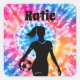 Pegatina Cuadrada Chica de fútbol Aquarelle personalizada de arcoiri