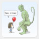 La chica le dice feliz cumpleaños a su amiga el gran goblin verde.