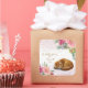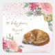 Un gato somnoliento rodeado de flores delicadas. La ducha de bebé perfecta. Purpurina de oro simulado.