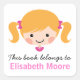 Pegatinas de planchas de libros muy amables y divertidos / etiquetas de libros para niños con un pequeño chica personalizado con pelo rubio atado a pigtails. Personalizable de texto "este libro pertenece a". Personalice el nombre. Diseño bonito para etiquetar libros infantiles.
