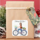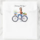Pegatina Cuadrada Chica En La Cesta Azul De Bicicletas De Flores Y V