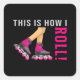 Pegatina Cuadrada Chica en línea patinando Queen Skates Skater regal