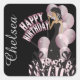 Pegatina Cuadrada Chica Feliz Cumpleaños Diva | Nombre DIY | Rosa