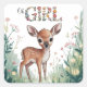 Pegatina Cuadrada Chica: Pequeño Chica de Deer Fawn Baby Shower