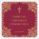 Pegatina Cuadrada Chica Primera Comunión Faux Gold deja Borgoña