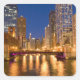Pegatina Cuadrada Chicago, Illinois, Skyline y Chicago River at