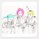 PEGATINA CUADRADA CHICAS COMIENDO SPAGHETTI