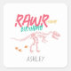 Este bonito y moderno diseño pegatina de cumpleaños de chicas presenta un esqueleto de dinosaurios t-Rex. Los pegatinas pueden ser personalizados con el nombre de sus hijos - el diseño perfecto de la excavación fósil de dinosaurios rosa y brillante para los favores de cumpleaños!