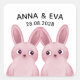 Pegatina Cuadrada Chicas gemelas Fiesta de cumpleaños con conejitos