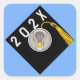 pegatinas de regalos de lacrosse de Guay, etiquetas de favoritas de fiestas de noche o sellos para sobres con palos y pelotas de color negro en una gorra de graduación. Editar texto para añadir año.