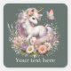 Pegatina Cuadrada Chicas linda fantasía unicornio agregar texto