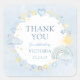 Estos adorables Boy Watercolor Arcoiris Bebé Sprinkle Gracias pegatinas cuadrados serían perfectos para seguir haciendo favores a los invitados que han celebrado a su ser amado y a su pronto a nacer bebé/bebés. Están decoradas con estrellas azules, amarillas y caqui, con arcoíris y nubes sobre un suave fondo de color azul. Se verán encantados con tus favores.