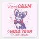Este diseño de "Mantengan la calma y mantengan su Chihuahua" presenta un lindo chihuahua con una corbata rosa. Este diseño divertido utiliza fuentes retro y gráficos de estilo vintage en tipografía rosa brillante y un aspecto de color púrpura que captura perfectamente un ambiente nostálgico pero vibrante. Tanto si eres amante de los chihuahuas como si te gusta el diseño único y lúdico, este diseño te hará sonreír a tu cara y a los que te rodean. Abran el encanto de este encantador diseño y hagan saber a todos que "mantengan la calma y mantengan su Chihuahua".
