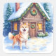 Pegatina Cuadrada Chinook Rustic Log Cabin Christmas Art