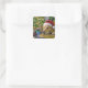 Pegatina Cuadrada Christmas Golden Retriever Watching a Toy Train