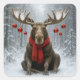 Pegatina Cuadrada Christmas Moose In a Snowy Forest