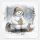 Pegatina Cuadrada Christmas Snowman With Friends In Winter Woods