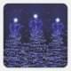 Pegatina Cuadrada Christmas Sparkling Trees Navy Blue Faux Bow