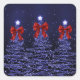 Pegatina Cuadrada Christmas Sparkling Trees Navy Blue Faux Red Bow