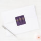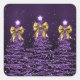 Pegatina Cuadrada Christmas Sparkling Trees Purple Faux Gold Bow