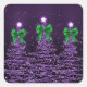 Pegatina Cuadrada Christmas Sparkling Trees Purple Faux Green Bow