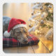 Pegatina Cuadrada Christmas Weimaraner Dog By a Tree
