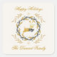 Pegatina Cuadrada Christmastime Deer with Wreath Yellow Cream