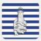 Pegatina Cuadrada Chrome Like Lighthouse on Nautical Stripes