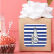 Un diseño de faro de color plateado en una decoración de rayas azul marino. Un regalo náutico moderno. Utilice el vínculo "Preguntar a este diseñador" para contactarnos con sus solicitudes de diseño especiales o para obtener ayuda con alguna de sus necesidades de personalización.