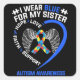 Pegatina Cuadrada Cinta Del Corazón Que Uso Azul Para Mi Hermana Aut