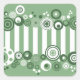 Ilustracion con decoración de círculos retro y rayas sobre fondo verde