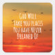 Cita cristiana inspiradora: Dios te llevará a lugares con los que nunca has soñado. Mensaje de comillas inspiradoras y motivadoras con un hermoso fondo de puesta de sol