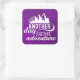 Pegatina Cuadrada Cita de aventuras - Montañas sobre fondo morado