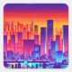 Pegatina Cuadrada Ciudad de Synthwave/Cyberpunk al atardecer