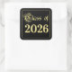 Pegatina Cuadrada Clase de Graduación en Negro y Oro de 2023