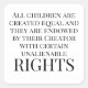 Letras negras sobre pegatina blanco. Todos los niños son creados iguales y su creador les otorga ciertos derechos inalienables.